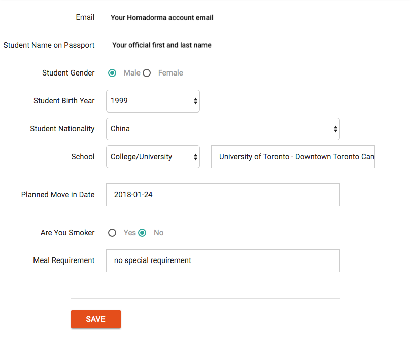 To update your Move-In Date, go to your profile on homadorma.com and select the new date.
